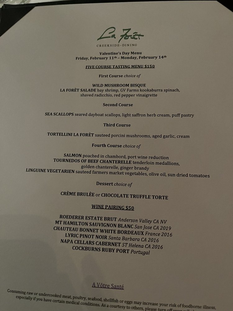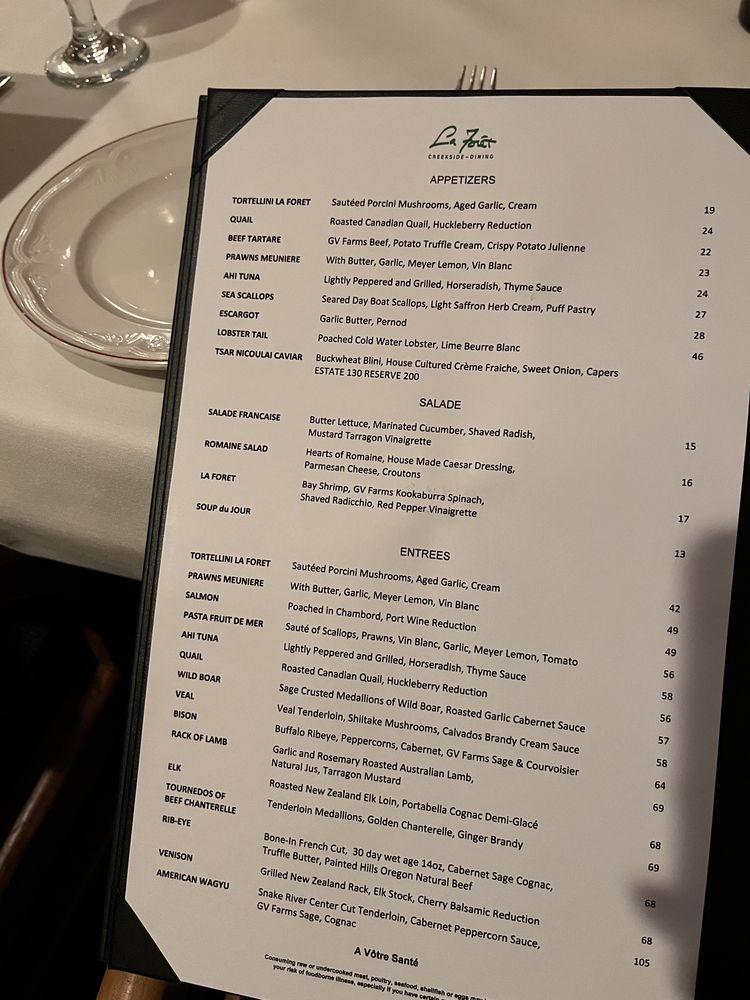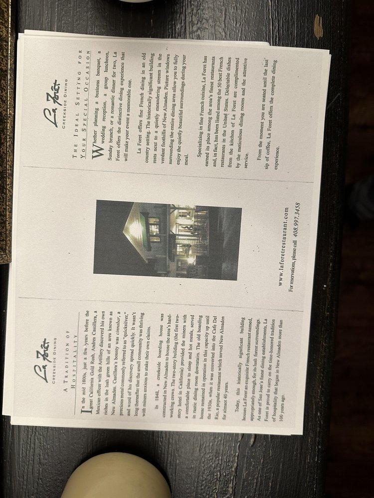 La Foret is an upscale, romantic restaurant in San Jose, CA, offering a diverse menu with limited vegetarian options. The restaurant has a classy ambiance, perfect for a special night out. Customers rave about the delicious food, with highlights like the lamb, quail, veal, and tasting menus featuring dishes like quail, elk, and rack of lamb. The service is attentive and the staff are friendly, creating a welcoming atmosphere for diners. While the prices may be on the higher end, the quality of the food and the overall dining experience make it worth it for special occasions. The restaurant also offers amenities like outdoor seating, private dining, and a full bar. With a focus on quality dishes and exceptional service, La Foret is a must-visit for those looking for a memorable dining experience.